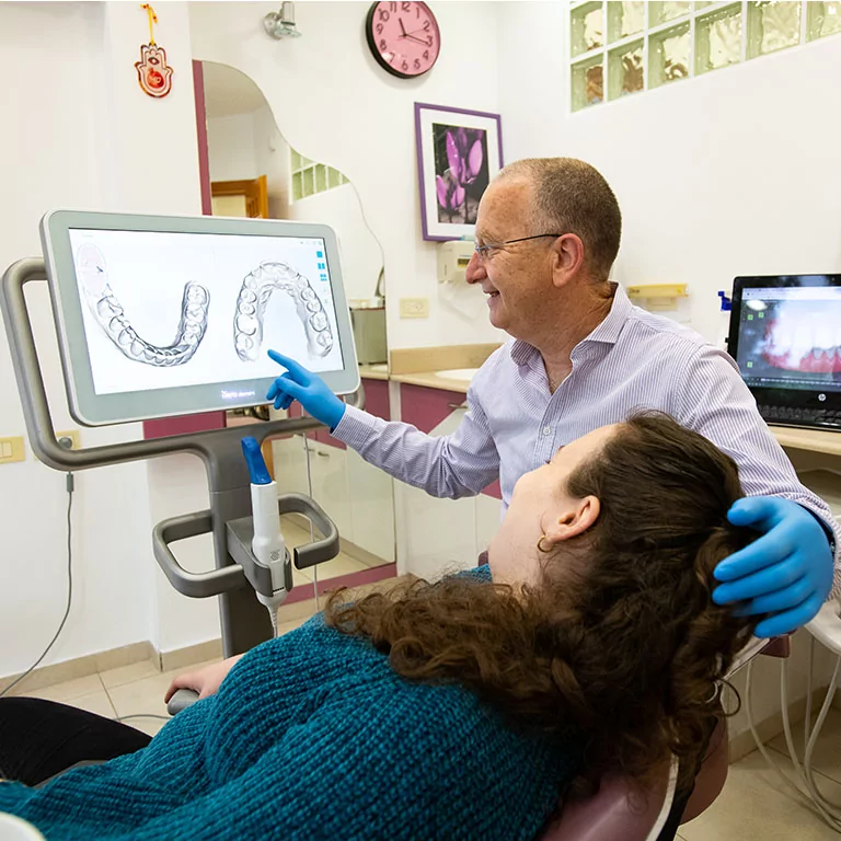 שימוש במצלמה מיוחדת ממוחשבת המעתיקה את מבנה השיניים והחניכיים בצורה תלת מימדית אל צג המחשב.